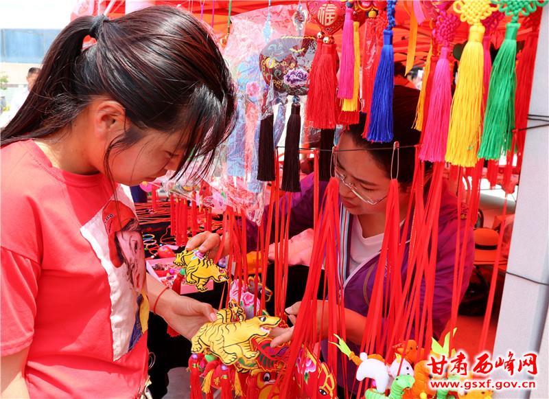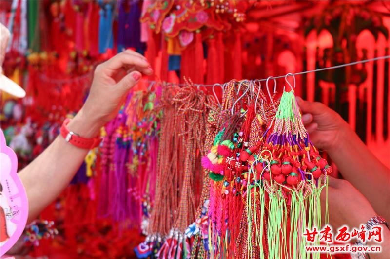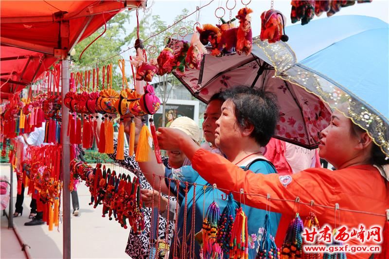 庆阳人素有端午节佩戴香包的习俗,一年一度的香包节已成为庆阳人的重要节会。在第十六届庆阳端午香包民俗文化节系列活动中,民俗文化产品展销依旧是节会的“重头戏”。